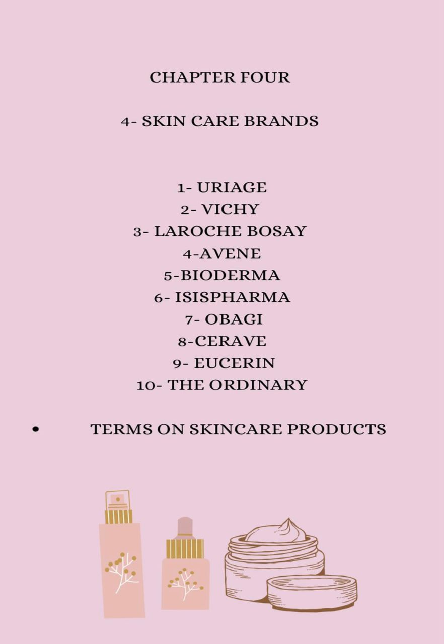 Uraige , Vichy , La Roche bosay, avenue ,Bioderma , Isispharma , Obagi, Eucerin, Cerave , The ordinary, And terms on skincare products. |